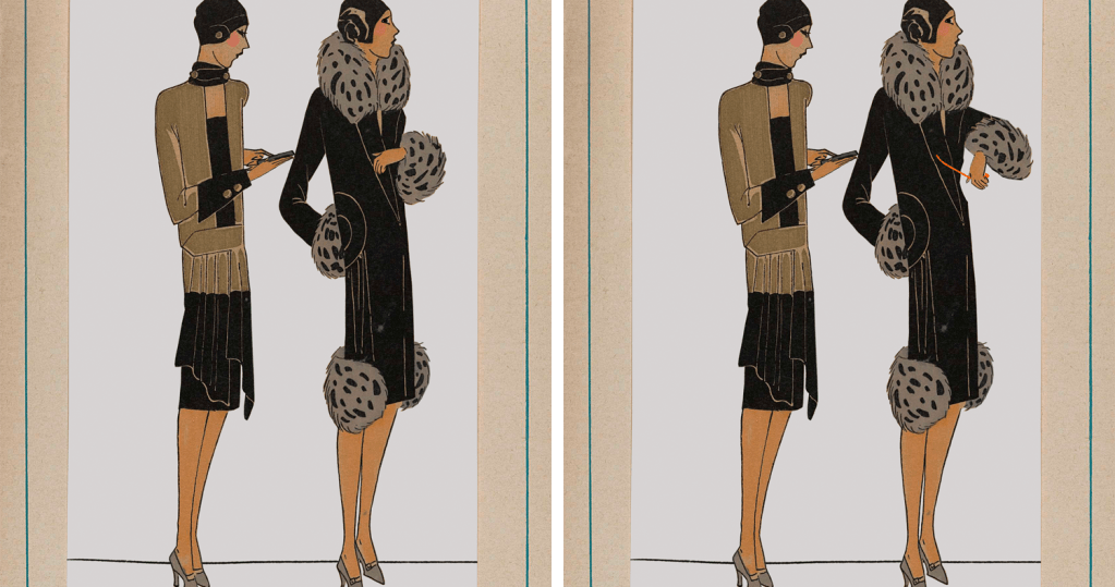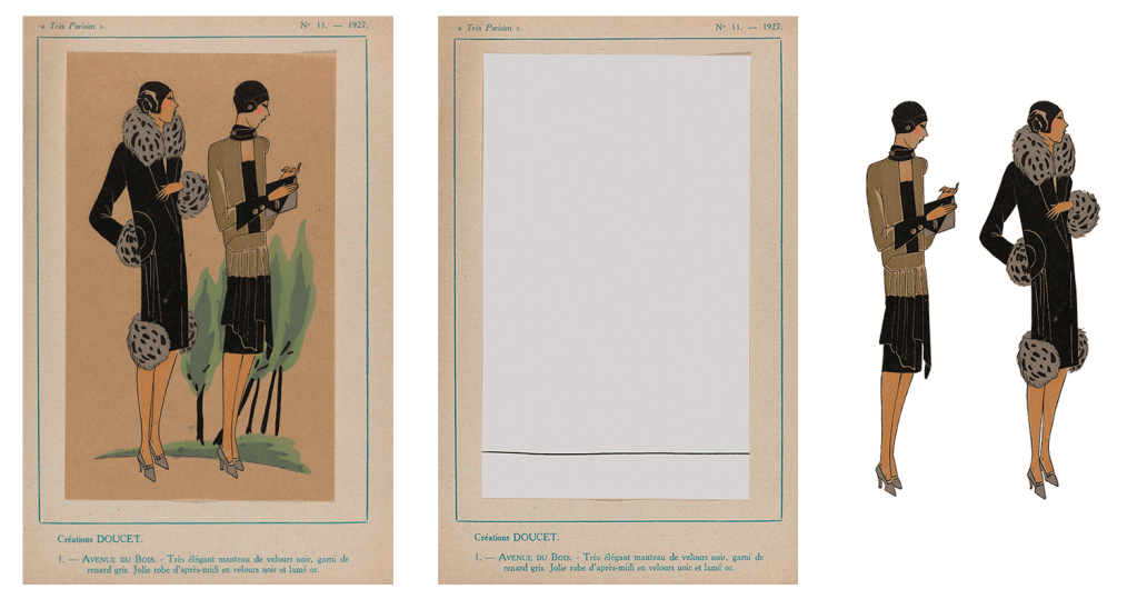 I needed some sort of fashion image to get started – and I remembered some lovely illustrations in French fashion magazines from a collage I’d made before. So I searched ‘Très Parisien’ on Europeana and found the perfect picture.